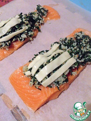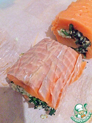 Ингредиенты для «Печёный фаршированный рулет из семги»: