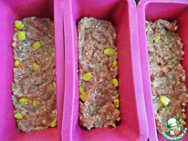 Так называемый мясной "хлеб" очень популярен в наших семьях и часто выручает на званых обедах. Мы прячем внутрь варёные яйца, целые шампиньоны, крошим овощи... Можно приготовить одной большой буханочкой, но я решила опробовать новые формочки (продаются по 3 в наборе) и спрятала внутрь любимую морковку! Весело получилось в разрезе)))