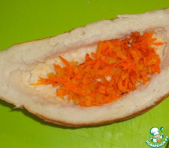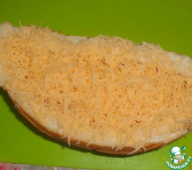 Посыпать сверху "лодочку" готовым тертым сыром.