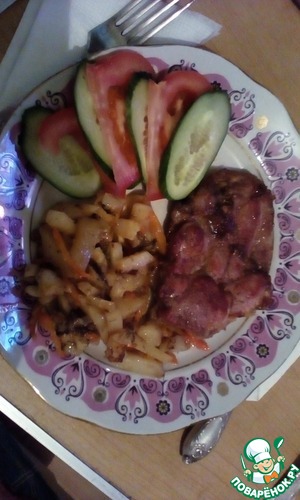 Нежнейшее мясо. Замаринованное простейшим способом. Мясо тает во рту, а традиционный гарнир из картофеля чудесно дополняет мясо.