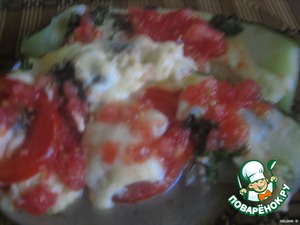 "Гармонь" из цуккини, начиненного сыром, зеленью и помидорами