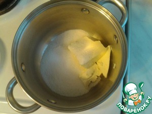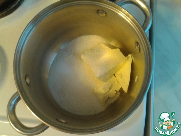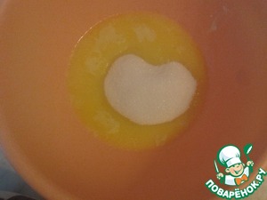 ТЕСТО: Растопить масло и взбить его с сахаром
