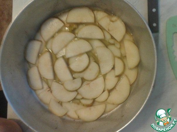 ТЕСТО: Переложить смесь на груши и запекать в духовке в течение 30-45мин 180градусов до готовности. (чтобы проверить готовность, нужно проткнуть в середине палочкой - если она выходит чистой, тесто готово). Дать немного остыть, затем пройтись ножом между стенками формы и пирогом. Накрыть сверху тарелкой и перевернуть пирог на тарелку.