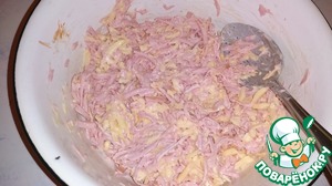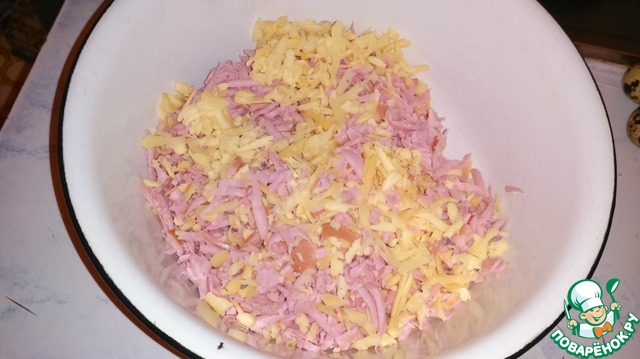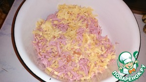Колбасу и сыр натереть на крупной терке.