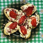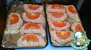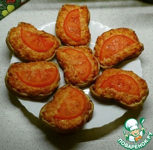 Сверху положить помидорку. И отправляем в разогретую до 180 градусов духовку на 15 минут.