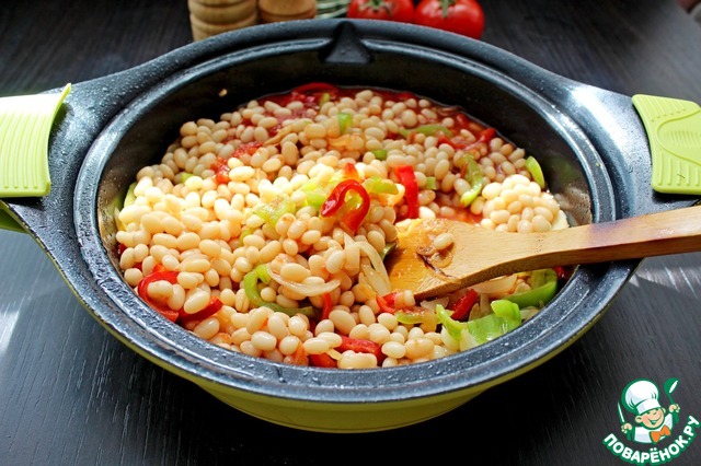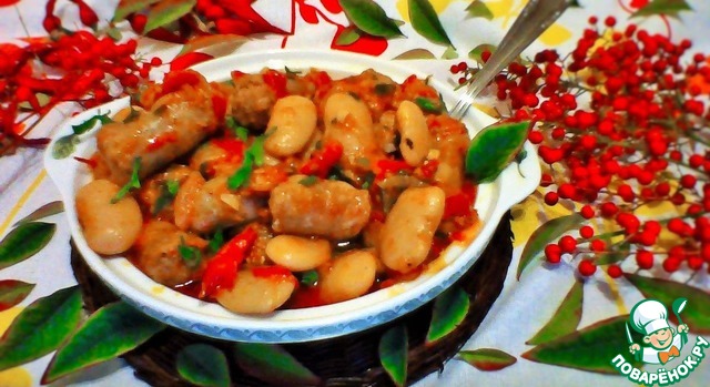 Рецепт «Колбаски с фасолью в томатном соусе»: