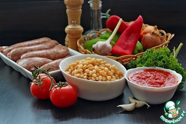 Ингредиенты для «Колбаски с фасолью в томатном соусе»: