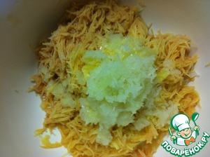 Картофель и лук натереть на терке.