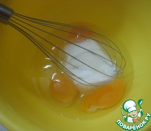 В отдельной мисочке взбиваем яйца и 50 грамм сахара.