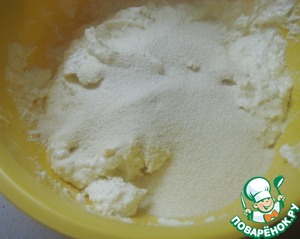 В творожную массу добавляем манную крупу.