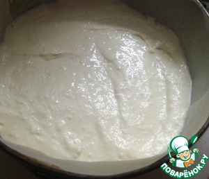 Выкладываем треть творожной массы, разравниваем.