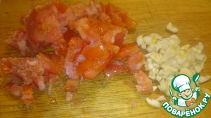 При слабом кипении проварить харчо еще 5 минут, помешивая, положить порезанные кубиками помидоры и мелко нарезанный чеснок, потомить суп еще 5 -10 минут, выключить плиту, накрыть суп-харчо крышкой и дать настояться за некоторое время до подачи 20-30 минут.