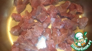 Говядину промыть, удалить пленку. Порезать на небольшие кусочки. Залить холодной водой (3 литра) и поставить варить на среднем огне 30 минут.