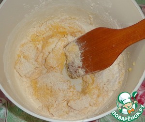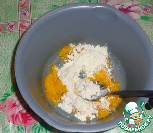 Всыпать частями муку и размешать.
