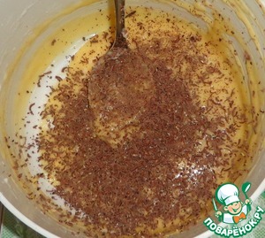 В оставшуюся часть теста добавить тертый на мелкой терке темный шоколад. Перемешать.