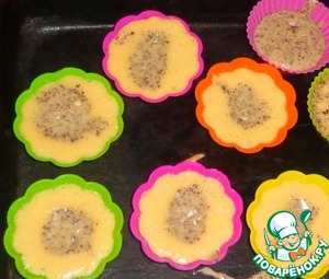 Заполнить формочки для маффинов на 2/3 тестом.