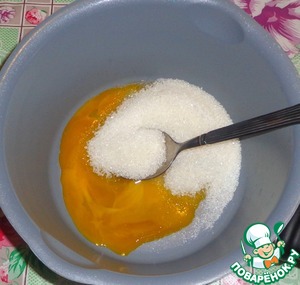 Взбить желтки с тростниковым сахаром. -