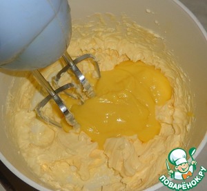 Добавить к желткам сливочное масло и продолжить взбивание.