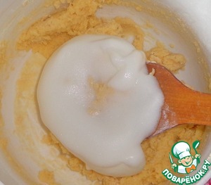 Взбить яичные желтки с тростниковым сахаром и пакетиком ванильного сахара.