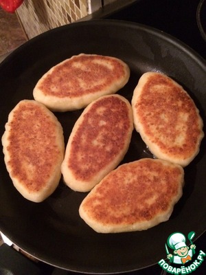 На сковороде немного увеличивается,жарила на среднем огне ,со второй стороны накрывала крышкой, тесто не пригорает.Лепила тонкие, потому что получаются пышные.