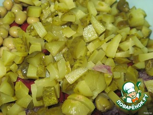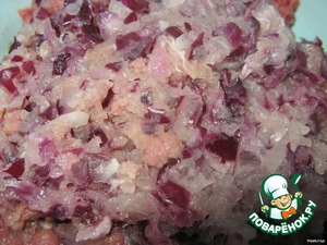 Огурцы нарезать маленькими кусочками. Добавить в фарш.