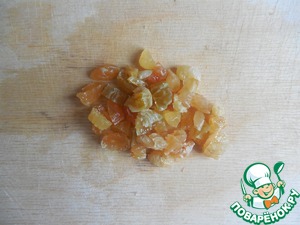С изюма слить воду, а затем порезать его.
