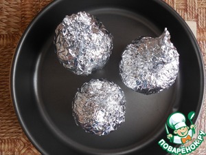 Накрыть яблоки "крышечками" и плотно обернуть фольгой.