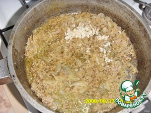 Обжарить фарш, добавить лук, после чеснок, пряности-соль, перец белый, розмарин,