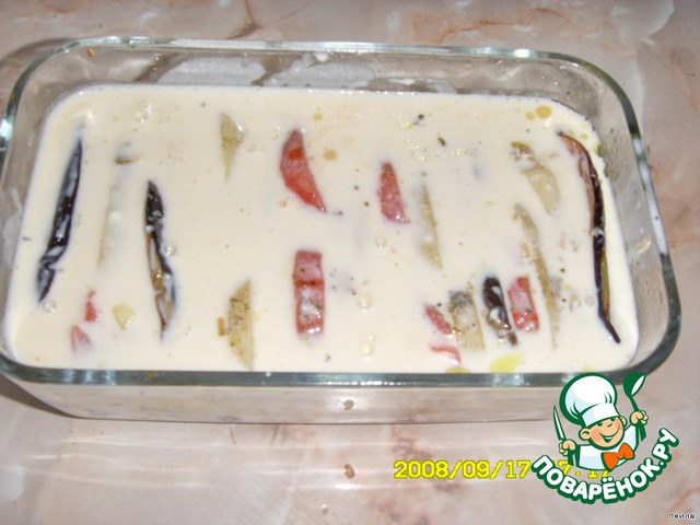 Соус налить поверх запеканки, сверху обсыпать красным перцем.