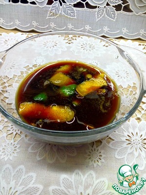 Из всех цитрусовых отжать сок и слить в ковш или сотейник. Перец чили (у меня сухой) кинуть в сок и поставить на газ. Выпарить сок до загустения.