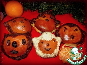Рецепт «Булочки "Обезьянка и зверята"»: