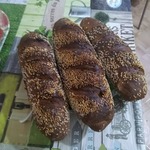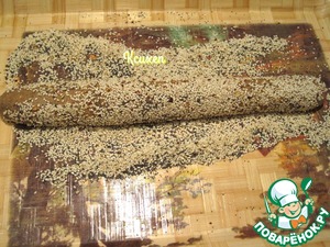 На подносе (или на столе) смешиваем ингредиенты для обсыпки: мак, кунжут, я добавила приправу "Мексиканская смесь" грубого помола. Если в солодовую заварку добавляем кориандр, то и в смесь для обсыпки тоже можно добавить щепотку кориандра, что я и сделала. Для того, что бы обсыпка хорошо пристала к багетам, мокрыми руками увлажняем поверхность багетов, затем обваливаем багеты в обсыпке, слегка придавливая.