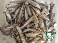 Мойву размораживаем, удаляем голову и внутренности. Промываем, добавляем хмели-сунели и соль. Тщательно перемешиваем. |