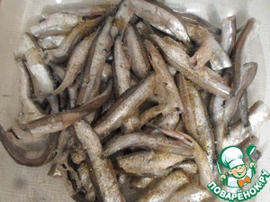 Мойву размораживаем, удаляем голову и внутренности. Промываем, добавляем хмели-сунели и соль. Тщательно перемешиваем.