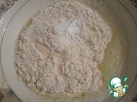 Затем добавляем муку и разрыхлитель, тщательно размешиваем. |