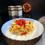 Один из любимых салатиков нашей семьи! Необычный и очень вкусный!.. Вычитали его давно где-то в кулинарном журнале, название затерялось.. В семье называем его "салат с гранатом". Здесь назову его "Краснодарский", в силу моего географического положения)))