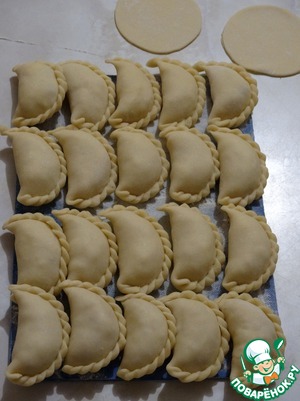 Если пересчитать на обычные, то ровно 150 штук выйдет, соответственно, "Царских" вдвое меньше. У меня вышло 50 двойных, остальные сделала обычные. Но кол-во может немного не соответствовать, т.к. все по-разному делают толщину теста, размер самого вареника и ко-во начинки.