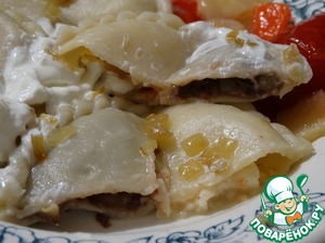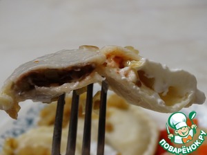 В этом варенике с одной стороны сыр, с другой начинка из фасоли. -