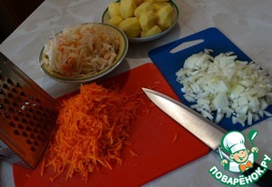 - Масло растительное (без запаха в тесто. Дополнительно 1/2 стакана душистого растительного масла для жарки лука и капусты.) — 3 ст. л.