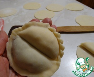 Затем по кругу делаем защипы, с которыми вареник приобретает более эстетичный вид и дополнительную прочность.