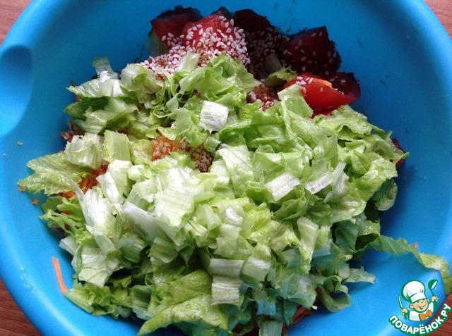 [+5]Замены были: айсберг, без сельдерея, кунжута и зелени и с добавл. салатной приправы Кнорр