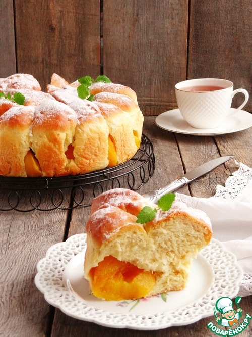 Предлагаю приготовить ароматный и воздушный дрожжевой пирог с консервированными персиками.