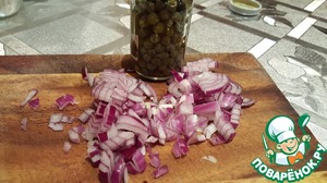 Нужно быть аккуратно с каперсами,очень доминантный вкус,в первый раз приготовления,мне пришлось подправлять количеством остальных продуктов относительно каперсов.