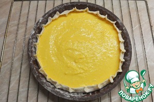 Выложить ароматную начинку в форму с тестом. При высоте чизкейка примерно 1см, выпекать в разогретой до 160-170С духовке 15-20 минут.