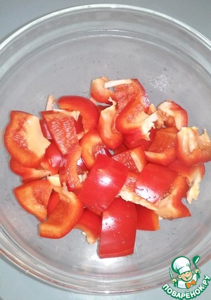 Обжариваем на раскаленной сковороде лук и перец с добавлением растительного масла, затем вливаем винный уксус, даем немного потушиться.