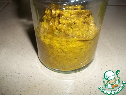 Все выше перечисленные ингредиенты сложить в блендер (я предпочла чашу для сухих продуктов), добавить уксус и измельчить до получения однородной пасты. Я добавляла все ингредиенты понемногу. Паста будет разлетаться по стенкам, собираем ложкой и отправляем обратно в чашу блендера. Можно так же добавить перец чили по вкусу, мне достаточно остроты имбиря и горчицы. Если у вас есть терпение, то можно воспользоваться теркой или потолочь все в ступке.