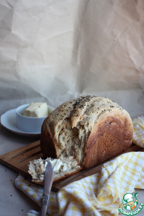 После последнего поднятия теста (где-то за 1 час до окончания программы) посыпать кунжутом. -