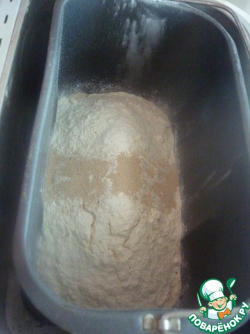 Потом сухие ( сахар, все виды муки и самые последние дрожжи). ВЫставляем нужную программу: у меня хлеб цельнозерновой, вес 750 гр, корочка- средняя