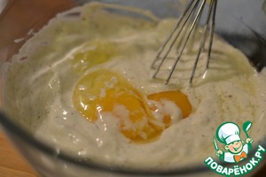 Йогурт, яйца, черный перец, соль перемешать хорошенько венчиком.