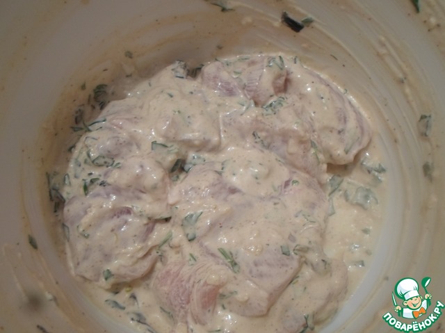 Смешиваем все ингредиенты для маринада и добавляем к курице. Тщательно перемешиваем, закрываем крышкой, убираем в холодильник минимум на 3 часа.